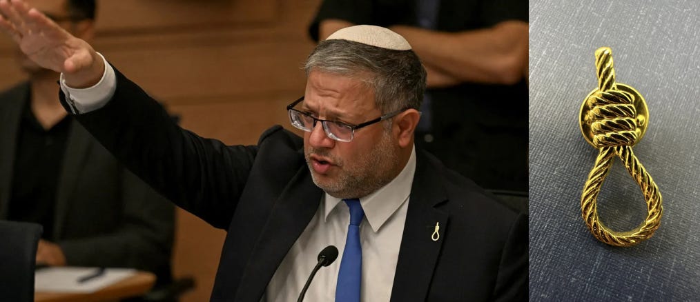 On March 10, Mohammed was transferred to Megiddo, a military detention center that B’Tselem, an Israeli human rights organization, has described as part of a “network of torture camps.” (“When we got off the bus,” one detainee told B’Tselem, “a soldier said to us, ‘Welcome to hell.’”) The severe overcrowding was the result of policies overseen by National Security Minister Itamar Ben Gvir, who has boasted about making conditions significantly worse for Palestinian prisoners. At the moment, Ben Gvir is leading a push to legalize the death penalty for Palestinians convicted of terrorism offenses, a category defined broadly under Israeli law, and has signaled his support by wearing a gold noose pin—closely resembling the yellow hostage ribbon—on his lapel.